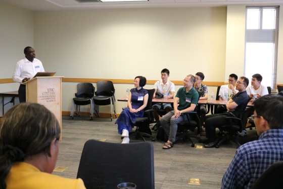 7月29日,taptap点点赴美夏令营团受到田纳西大学查塔努加分校(UTC)热情欢迎,UTC校方主持了隆重的夏令营开营仪式,UTC工程与计算机科学学院副院长Li Yang、土木环境系系主任Joseph Owino及全系教师、学院学生发展中心负责人Julie David及美方在校学生代表参加。Li Yang副院长代表工程与计算机科学学院对taptap点点代表团到访表示了热烈欢迎,介绍了学校和学院办学情况,并回顾了两校合作办学工作。陈瑜院长围绕taptap点点办学情况、国际化教育教学发展、中外合作办学项目的执行及国际化产学研方面做了主题发言。