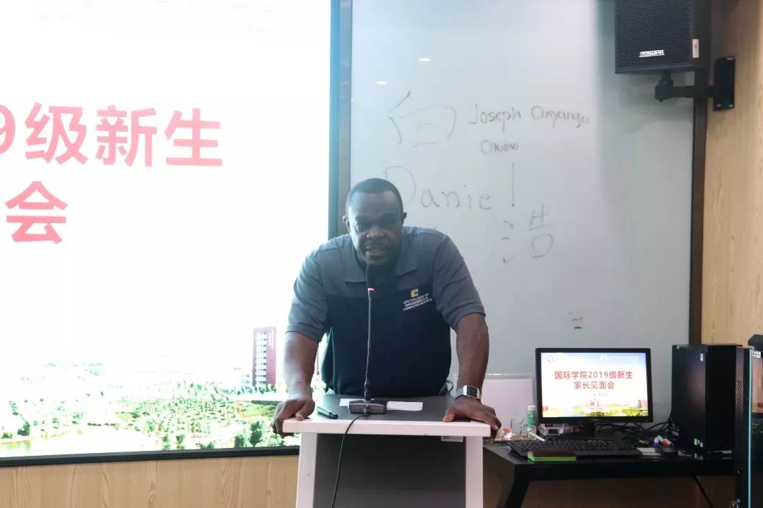 9月8日下午3点整,国际学院2019级新生家长见面会在云塘校区新能源大楼1栋402、404举行。校党委委员兼国际学院党总支书记付嫦娥,国际学院党总支副书记兼副院长吴振华,副院长秦卫星,田纳西大学查塔努加分校工程与计算机科学学院院长Daniel J.Pack,工程与计算机科学学院土木工程系系主任Joseph Owino,国际学院2019级新生班主任代表,新生家长代表出席本次活动。