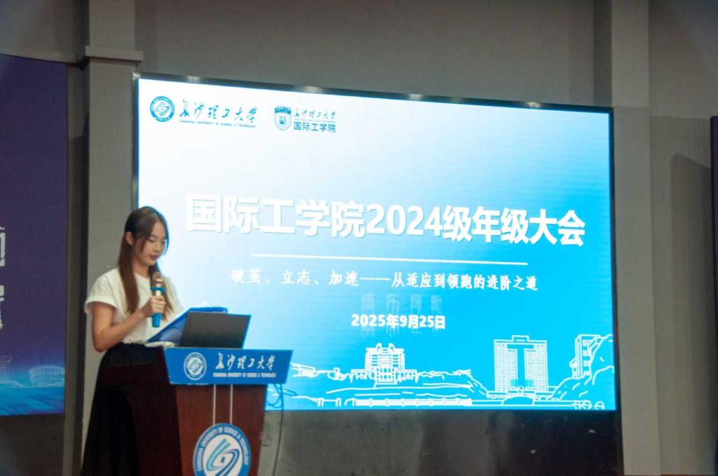 9月25日,国际工学院在学生活动中心科技报告厅召开2024级年级大会,本次年级大会的主题为“破茧、立志、加速——从适应到领跑的进阶之道”。学院教务办主任余志、教务老师罗帅、辅导员易芙蓉、及全体2024级学生共同参会,本次会议由电气2402班余佩慈主持。