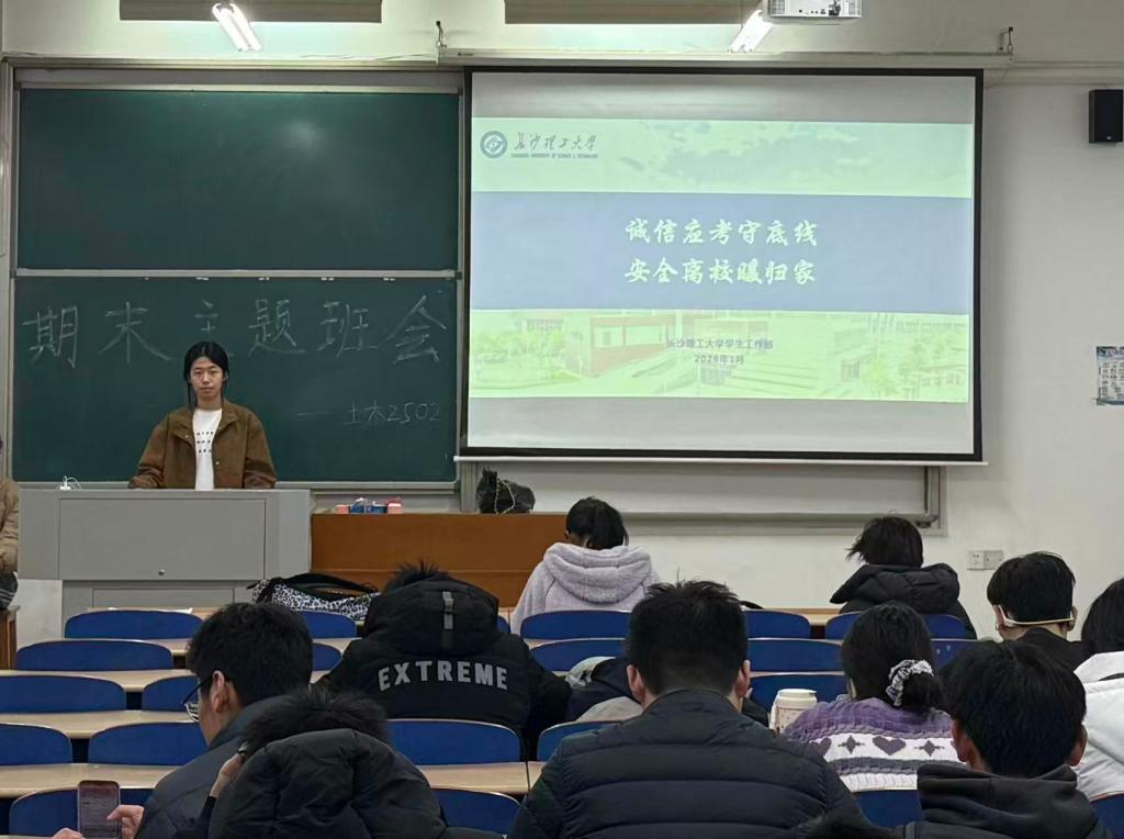 本次班会的核心内容为考风考纪和诚信应考教育、期末安全教育、期末人文关怀与精准帮扶共三个方面。各班级组织学生系统地学习了《taptap点点体育学生考试违规处理办法》等文件,结合典型案例剖析违规后果并以班级为单位完成了《诚信考试承诺书》签署;围绕消防、反诈、校园交通等安全要点,通过视频学习、案例讲解开展专题教育,明确离校报备流程与返乡安全要求;同时班长针对学业压力、经济困难等问题讲解了心理健康支持渠道与特困补助申请方式。