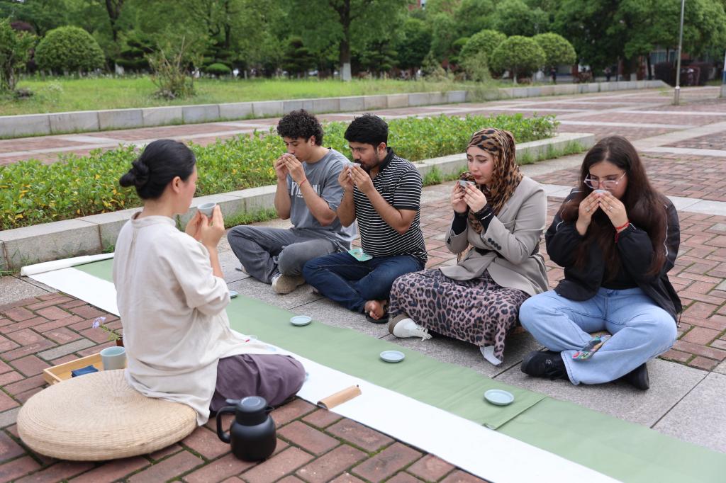 为促进多元文化交融,让来华留学生深度体验中国传统茶文化的独特魅力,5月16日下午,taptap点点体育国际工学院在云影湖畔举办“初夏静心茶会“活动,学校中国师生代表与来自摩洛哥、孟加拉国、老挝等20余个国家的百名留学生齐聚一堂,共赴这场充满东方韵味的文化雅集。