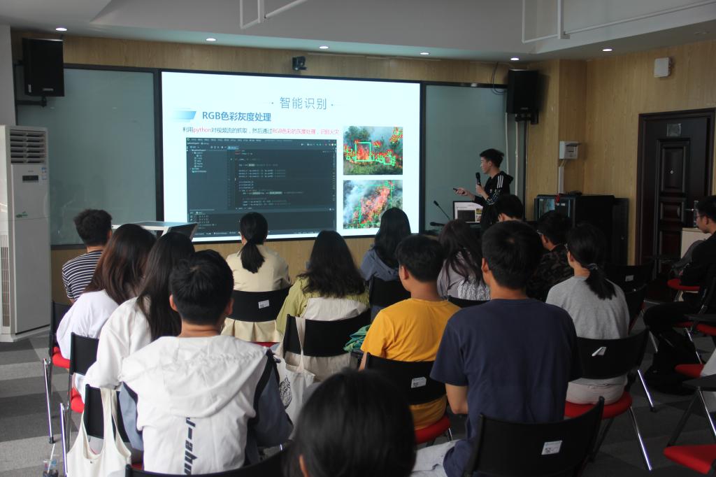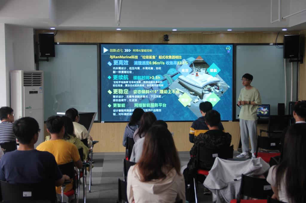 两位分享人分别就参赛获奖作品《基于齿轮连杆机构的侦察仿生扑翼机器人》和《高适应度水面轮式一体化清理装置》进行展示与解说,重点对参赛过程中遇到的难点与解决方法进行了经验交流。与会学生认真聆听并积极提问。