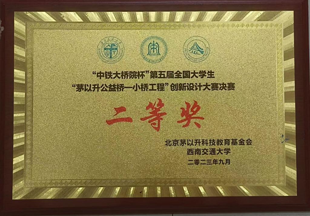 2023年9月22-23日,“中铁大桥院杯”第五届全国大学生茅以升公益桥一小桥工程”创新设计大赛决赛在成都西南交通大学举办。比赛是由北京茅以升科技教育基金会以及来自中国科技馆、天津大学、清华大学、西南交通大学、北京交通大学、东南大学、河海大学的专家学者共同发起,交通运输部主办的公益慈善建桥项目。本次大赛入围作品参赛团队累计73组,300余人参与线下评审,超千人参加线上直播。