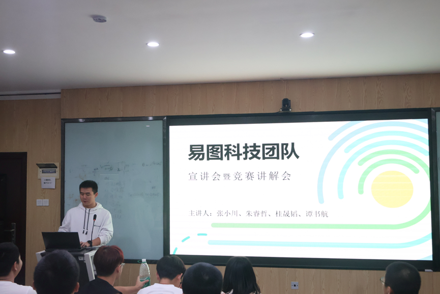 会上,易图科技团队学生代表分别对各专业、各类型竞赛做出详细介绍,并结合自身竞赛经历进行经验分享与交流,现场反响热烈。