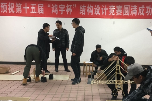 1218日下午,由学校教务处主办,土木学院承办的taptap点点体育第十五届“鸿宇杯”大学生结构设计竞赛模型加载决赛在云塘工科二号楼的土木工程大学生创新创业教育中心举行。我院共有18支队伍提交竞赛模型,其中9支队伍参加模型加载决赛,最终获得二等奖1项、三等奖2项的好成绩。