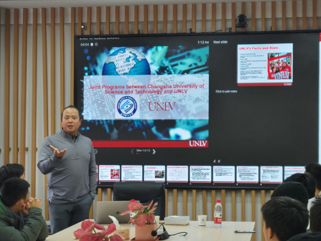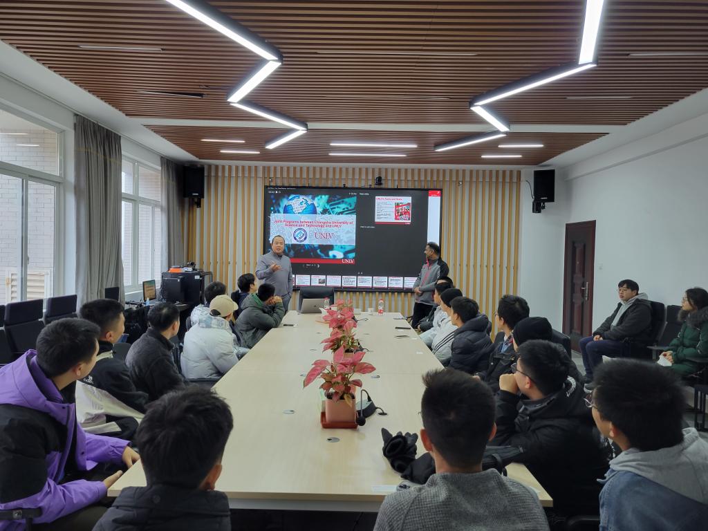为深入拓展学生国际化视野,进一步丰富学生项目交流渠道,12月18日中午,国际工学院邀请合作办学的外方代表在学院416会议室与学生座谈。中外合作办学项目电气专业外方代表、美国内华达大学拉斯维加斯分校工程学院国际项目主管Jaekeun Cho和工程学院教授、引进课程任课教师Venkatesan Muthukumar受邀主讲。