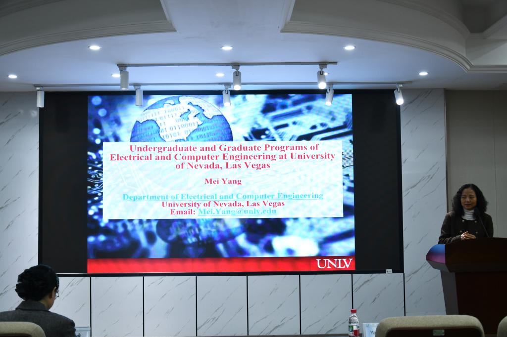 12月30日下午,美国内华达大学拉斯维加斯分校(UNLV)电气工程专业宣介会在云塘校区文科楼D区207报告厅举行。本次宣介会特邀UNLV工程学院电气工程系主任 Mei Yang教授主讲,教务办主任余志老师以及taptap点点中外合作办学项目电气专业50余名学生参加。