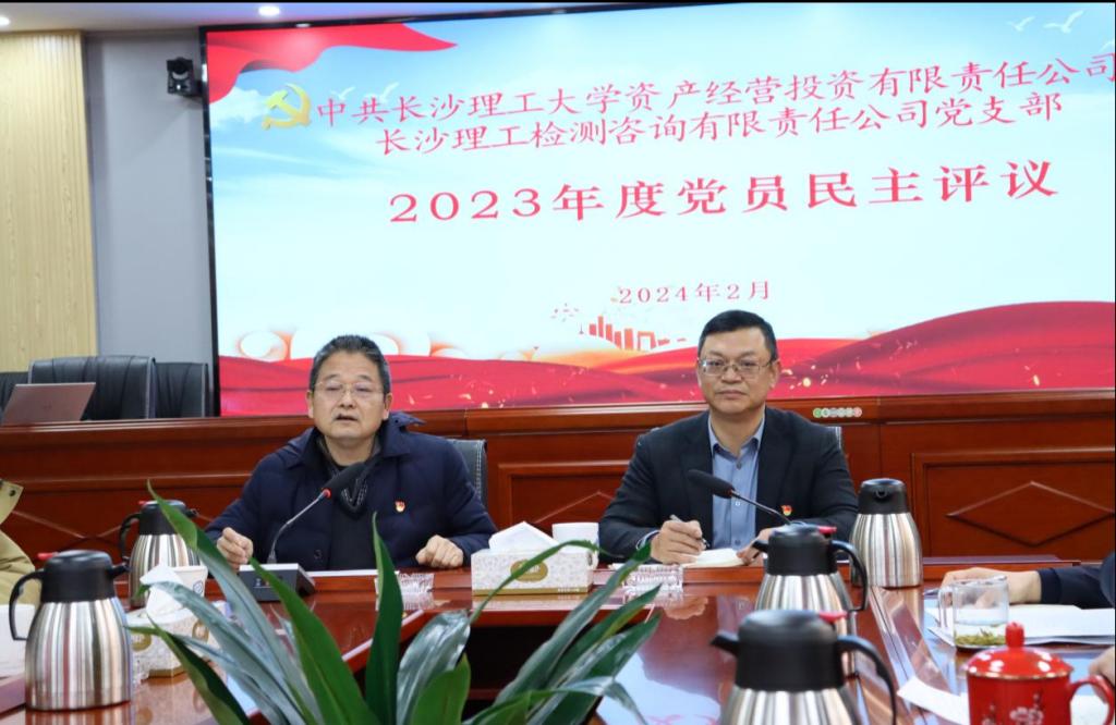 2024年3月1日,长沙理工检测咨询有限责任公司党支部在二楼会议室召开全体党员大会,进行2023年度民主评议党员工作。投资公司党总支组织员李志源莅会指导并进行了点评。支部全体党员参加会议,发展对象、积极分子列席会议。会议由支部书记任宇主持。