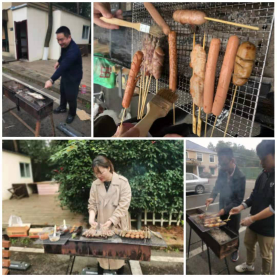 听闻下午特设了一项烧烤活动,大家都跃跃欲试。时间一到,大家立马行动起来,有的生火、有的分拆包装、有的清洗工具,然后烤肉、烤菜,大家忙得不亦乐乎,气氛十分融洽。此项活动既是对大家动手能力的一场考验,也是对大家增强凝聚力的一种助力方式。