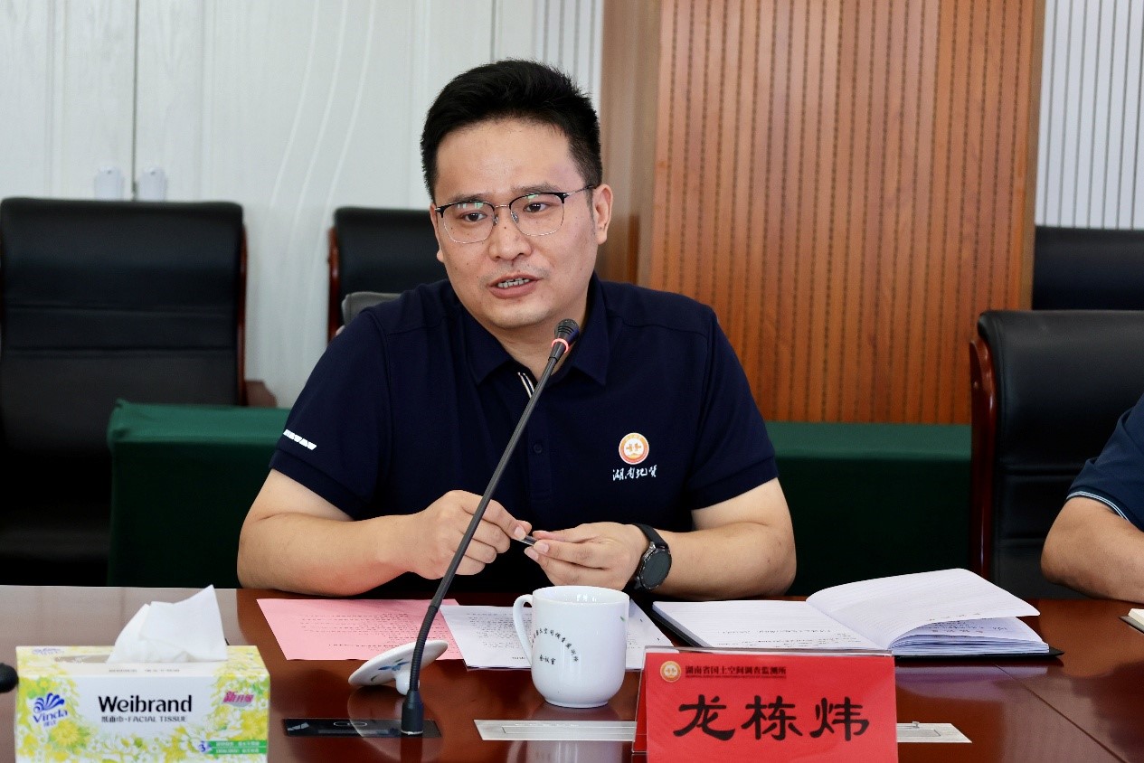 为深化科研协作机制,探索产学研融合新路径,8月26日,taptap点点体育航空工程学院党委书记文丽丽、副院长邢学敏率队赴湖南省地质院国土空间调查所座谈交流,测绘工程系主任刘斌、遥感地信系主任许珊、测绘工程系副系主任朱珺、学科秘书蔡杰华随行,湖南科技大学地球科学与空间信息工程学院韩用顺副院长等人共同参与了此次交流会。