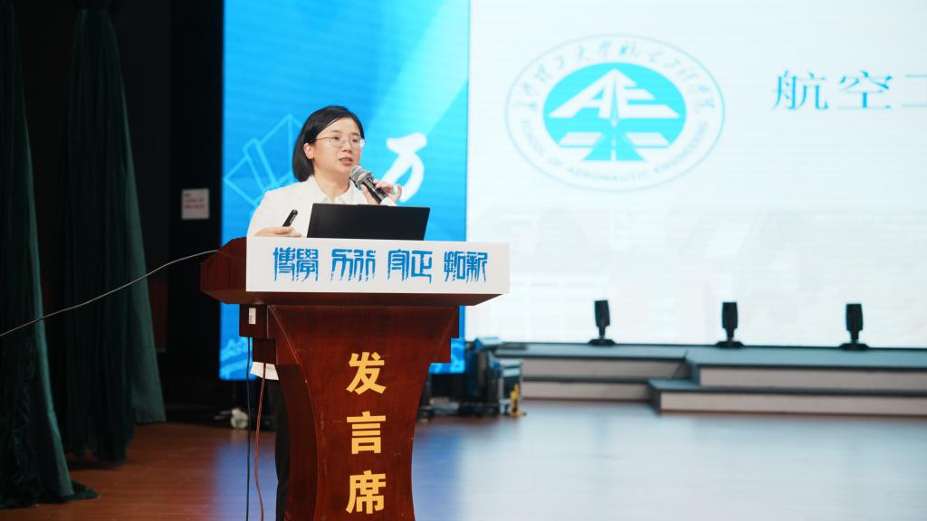 张云菲围绕“学院是什么、教什么、有什么特色” 三大核心问题,向同学们全面介绍了学院基本情况。从学院的组建背景、师资队伍构成,到本科专业设置、课程体系建设,再到主动服务“低空经济”与“交通强国”的办学特色,张云菲用详实的数据与生动的案例,让同学们对学院教学情况有了清晰认知,她鼓励同学们要坚定信心,深耕本专业,在低空赛道上找准方向,练就真本领。邢学敏聚焦学科建设与科研创新,为同学们勾勒了学院的“学术蓝图”,详细介绍了学院的学科定位、科研团队优势以及研究生培养成效。她表示:“无论是本科生想参与科研项目,还是未来有考研深造需求,学院都能提供优质平台,期待同学们的加入。”