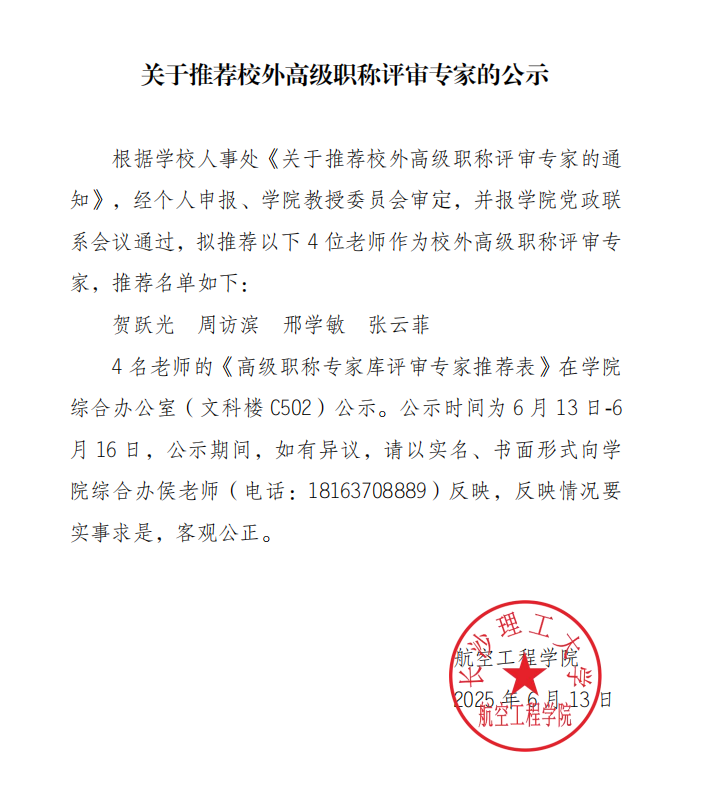 关于推荐校外高级职称评审专家的公示