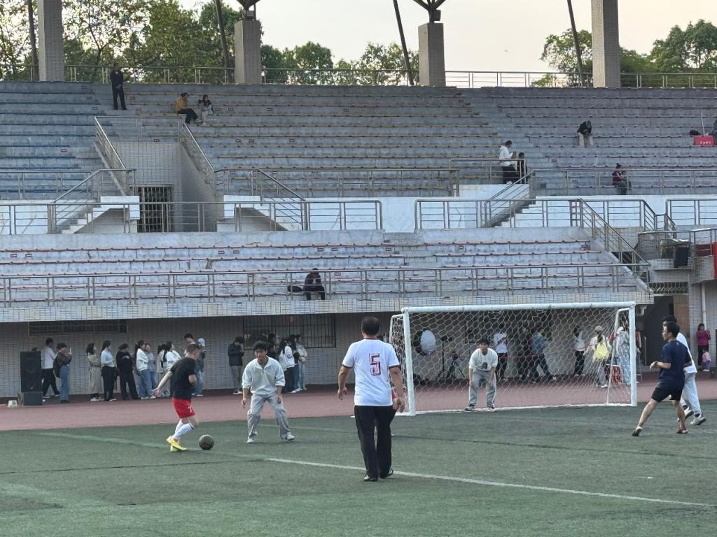 比赛在热烈的气氛中拉开战幕,双方迅速进入状态,展开激烈较量。教师队斗志昂扬、配合默契,教师队进入状态较快,凭借娴熟的脚下技术和默契的传接配合,屡屡组织起有威胁的进攻。学生队则展现迅速的跑动和积极的拼抢意识,脚下盘带、边路突破等场面接连上演,比赛前半段,学生队火力全开,展现出青春的活力与冲劲。