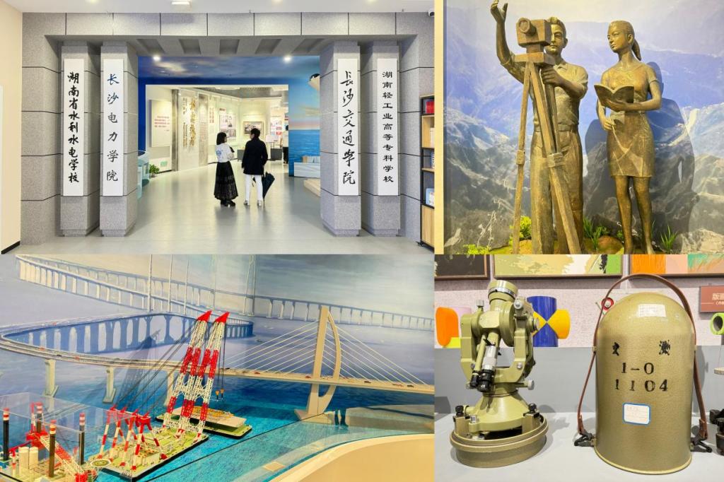 活动的最后一站是长沙理工三全育人教育基地。听老师们细数本专业的发展历程。“学科树”的创意呈现,直观地展示着测绘学科与土木、交通等专业的交叉融合趋势。港珠澳大桥模型也让人联想到其背后凝结的无数测绘智慧,也提醒着我们,测绘的经纬度,一直镌刻在时代发展的图景中。