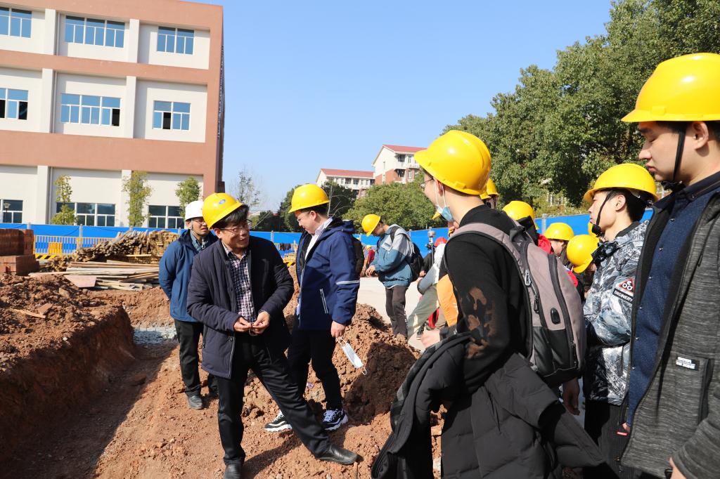 1月15日,土木学院17级本科生在柳厚祥教授等教师的带领下走进工训中心、基础中心项目工地开展毕业见习,这也是taptap点点体育中西部二期(工训中心、基础中心)项目迎来的首批见习生。