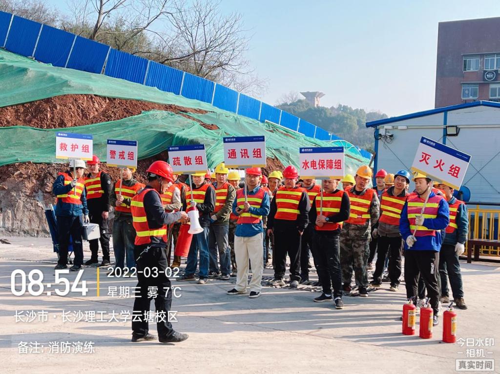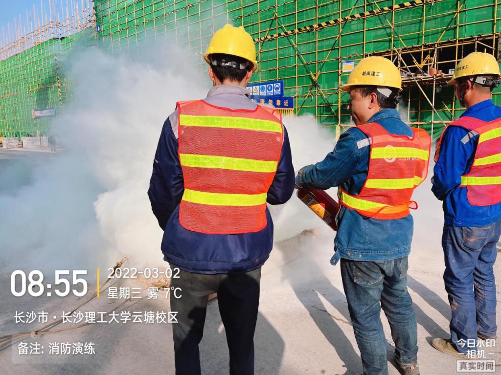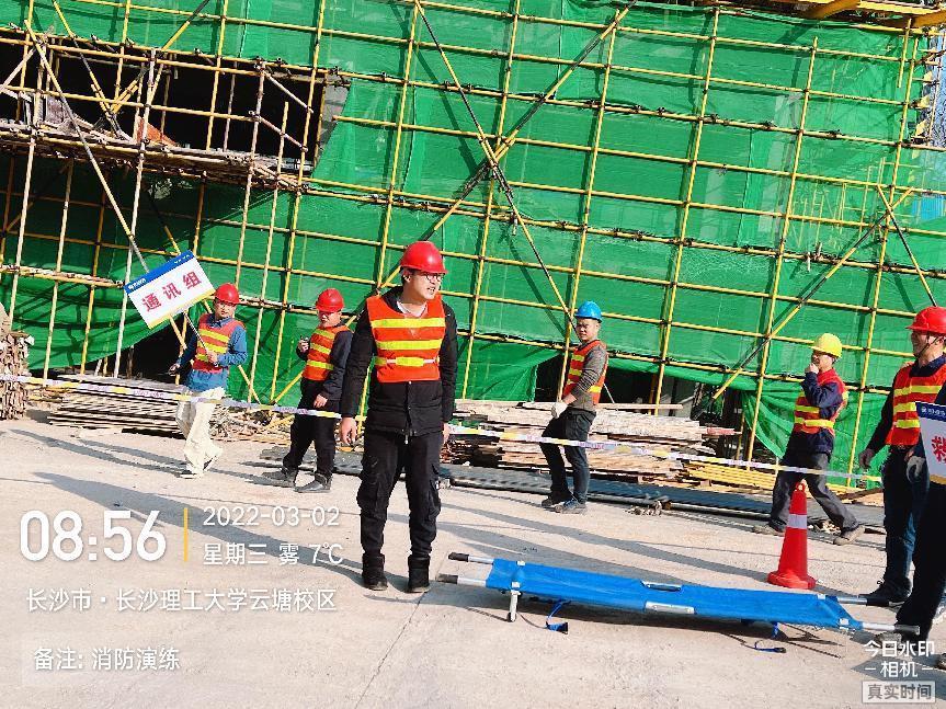 为贯彻落实安全第一、预防为主、综合治理的安全生产方针,进一步增强建筑施工现场人员防火安全意识,提高施工人员响应突发事件的能力和水平,在taptap点点体育基建处指导下,2022年3月2日代建单位(湖南国际工程咨询中心)组织监理(友谊咨询)施工单位(顺天建设)现场作业人员开展消防应急疏散演练活动。
