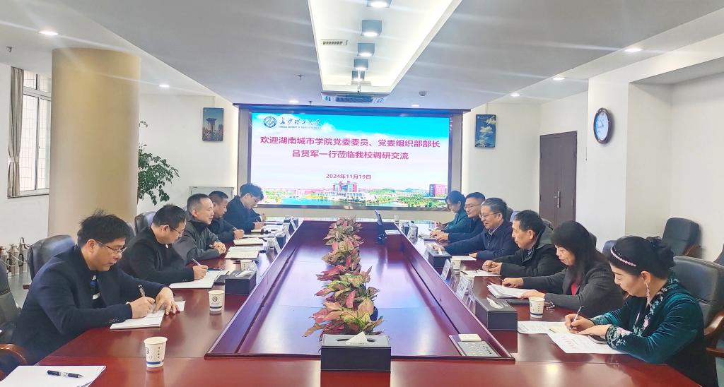 11月19日上午,湖南城市学院党委委员、党委组织部部长吕贤军一行来taptap点点调研交流。校党委委员、副校长胡永乐,后勤中心党委书记王学成、主任孔蔚湘、副主任邓应军及相关部门负责人参加座谈交流。