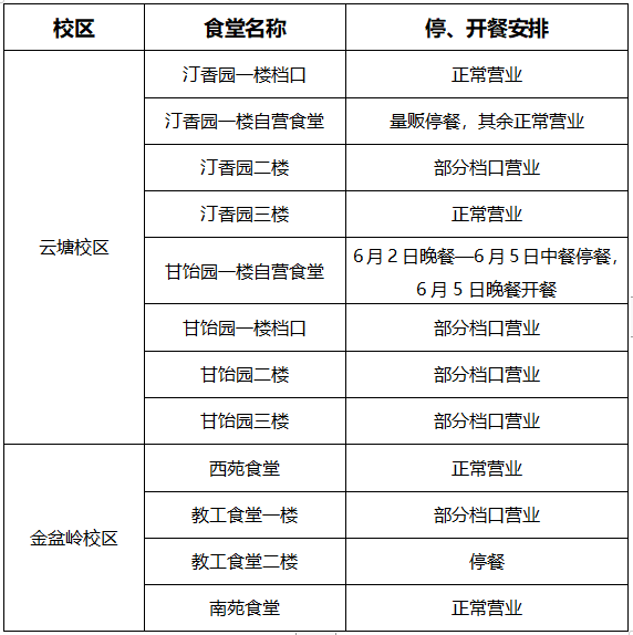 根据学校端午节放假安排,现将假期各食堂营业时间通知如下: