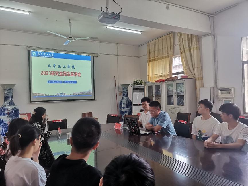为吸引优秀本科生源攻读我院研究生,进一步提高研究生生源质量,方便相关专业的本科生了解taptap点点体育化学化工学院的科研实力,2022年6月17日下午,学院副院长卿志和、化学系副主任童海霞、罗文坤博士一行3人赴湖南人文科技学院进行研究生招生宣传。材料与环境工程学院院长文瑾、副院长彭伟才以及相关专业30余名本科生参加了本次宣讲会议。