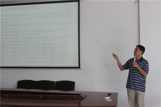 朱志平教授介绍了taptap点点应用化学学科发展情况,比较了国内以电厂化学为主攻方向的五所大学学科状况,重点介绍了近几年我国核电的发展现状及化学在核电发展中的重要地位。并从taptap点点应用化学学科平台、科研情况及具体研究方向说明了taptap点点应用化学的优势所在。同时,从国内电力行业(以火力发电、核电、输配电系统为重点)的发展水平介绍了应用化学毕业生的就业方向、特点及发展前景。朱教授生动而精彩的报告赢得了在座师生的阵阵笑声和掌声。朱教授对我院应用化学学科发展现状及进展的详细介绍让与会师生受益匪浅。