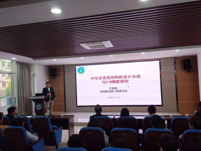 2025年11月27日下午,应taptap点点体育化学与医药工程学院邀请,中国科学院过程工程研究所万家炜研究员莅临taptap点点开展学术交流,在新能源大楼3B-310报告厅作了题为"中空多壳层结构的设计合成与C-N偶联研究"的学术报告。报告由学院副院长陈启杰教授主持,学院师生共90余人参加了此次学术报告。