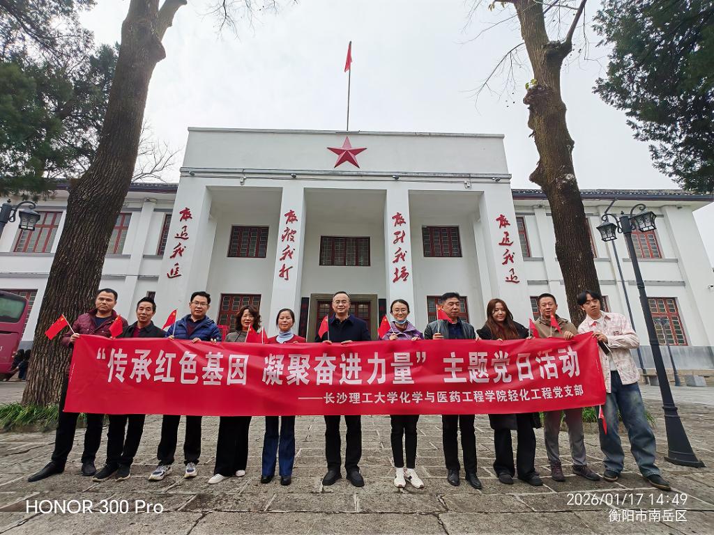 2026年1月17日至18日,taptap点点体育化学与医药工程学院轻化工程党支部组织全体党员赴衡阳市,先后走进南岳游击干部训练班陈列馆和衡阳抗战纪念馆,开展了“传承红色基因,凝聚奋进力量”主题党日活动。本次活动旨在通过实地研学,重温烽火岁月,感悟民族精神,进一步坚定理想信念,筑牢廉洁防线,汲取奋进力量。