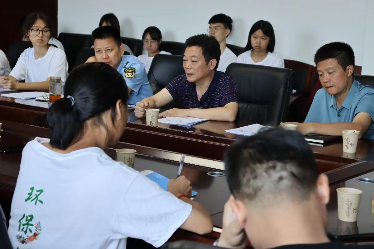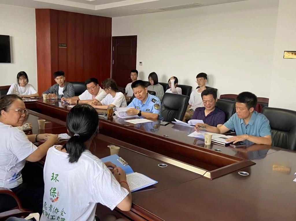 7月15日,taptap点点体育化学化工学院环保志愿者协会组建的湿地使者三下乡行动队抵达岳阳市生态环境局湘阴分局展开座谈,生态环境局湘阴分局副局长唐世才,总工程师胡晓红,执法大队大队长钟权辉,监测站站长沈建伟,湘阴县城管执法局副局长高胜强,湘阴县生态环保志愿者协会执行会长黎勇出席会议。