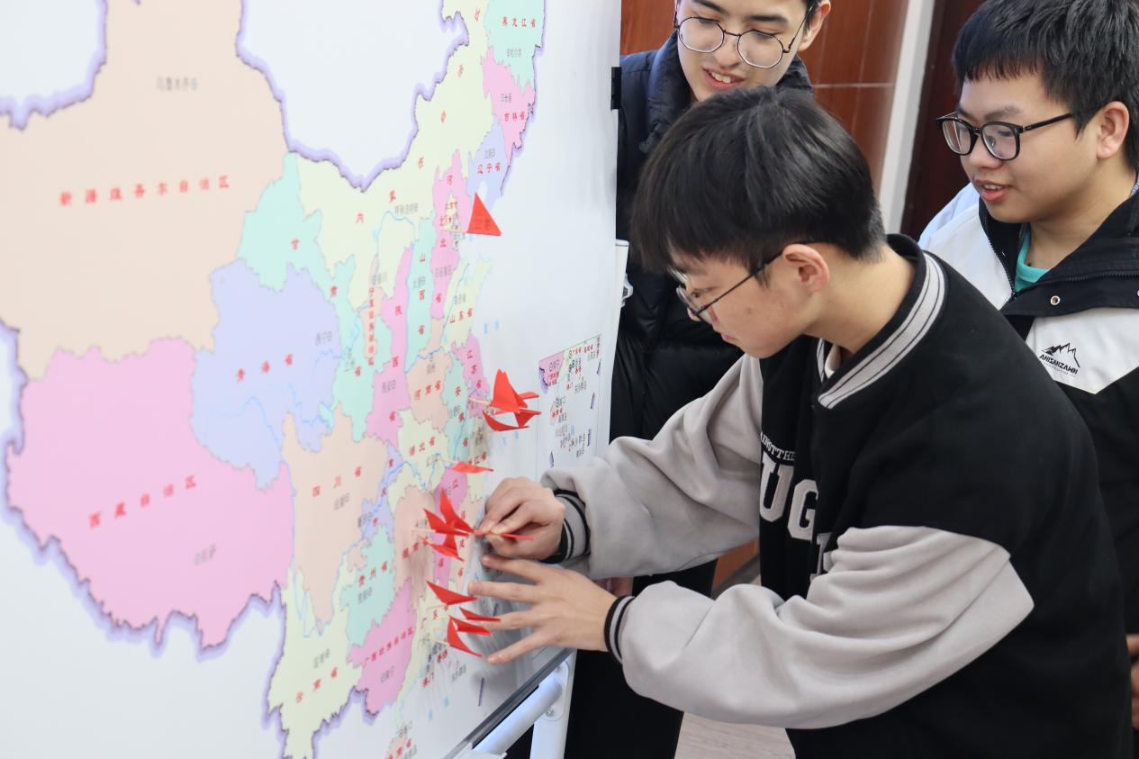 随后,活动进入了别具意义的“插旗明志”环节。会场一侧布置了一幅大型中国地图,考研学子们将写有自己名字的“心愿旗”,郑重地插在目标院校所在地的版图上。一面面旗子不仅象征着学子们清晰的奋斗目标,更汇聚成一股昂扬向上的蓬勃力量,展现了化院学子志在四方、勇攀高峰的决心与风采。