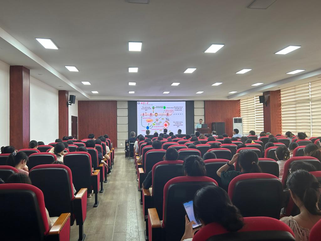 学术报告中,刘义教授先阐述了人类胰岛素(HI)与阿尔茨海默氏病(Alzheimer)之间的联系、研究HI蛋白纤维化过程及抑制剂的重要意义。其次,通过动力学及热力学分析方法介绍了纤维生长规律及纤维诱导生长机制,并揭示了不同表面改性的碳点(CDs)对抑制人胰岛素蛋白聚集和生长的机理,也为师生进一步讲解了碳点在体内环境中对阿尔茨海默氏病(Alzheimer)治疗的应用前景。最后,刘义教授鼓励青年教师以及研究生们深入挖掘,做创新性研究。