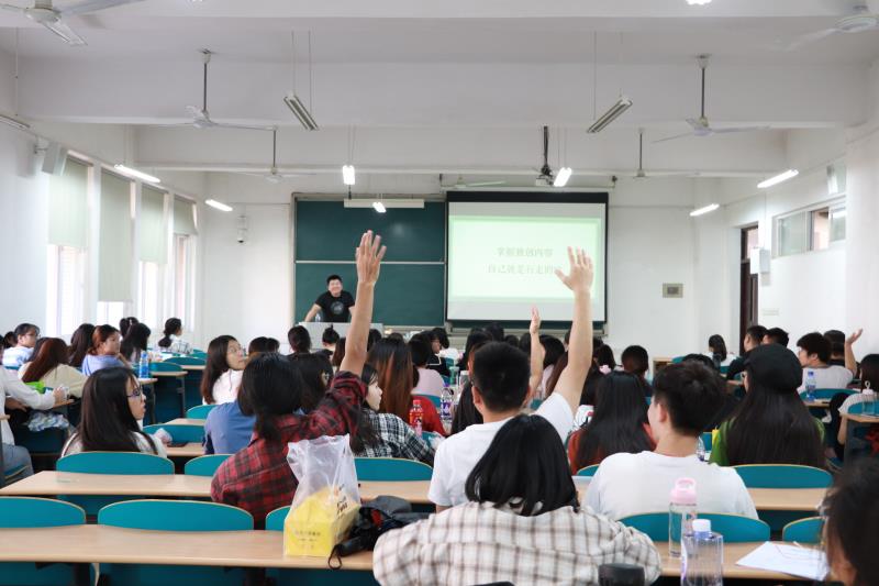 在互动交流环节,学生们踊跃地举手发言,肖海涛根据同学们的提问从内容定位、平台的选择、自媒体运营等方面进行了更加细致的补充,并总结道:掌握独创内容,自己就是行走的IP