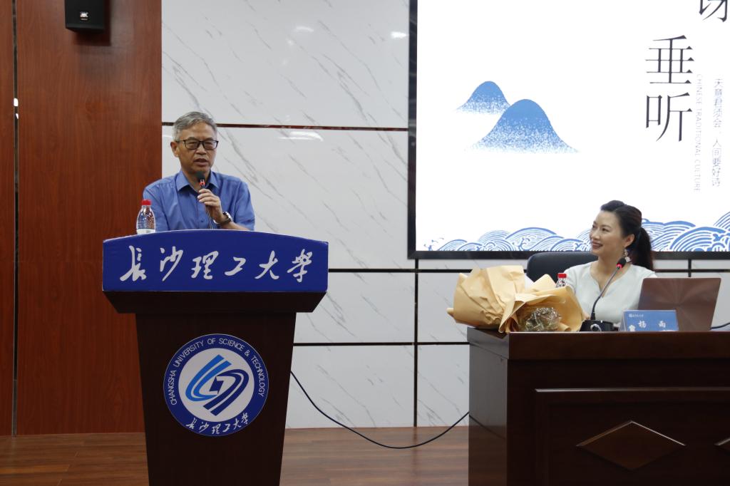 杨雨总结了品读诗词的三种途径:记诵吟唱、知人论世和以意逆志。她分享了吟诵的基本原理,并现场用粤语吟唱了《静夜思》,伴随着抑扬顿挫的声音旋律,在场师生感悟到了古典诗词的魅力。她补充说,我们用人生阅历去读诗,用自己的经历去解读诗歌所蕴含的思想和情感时,一定会打开更加独特而开阔的诗歌天地。