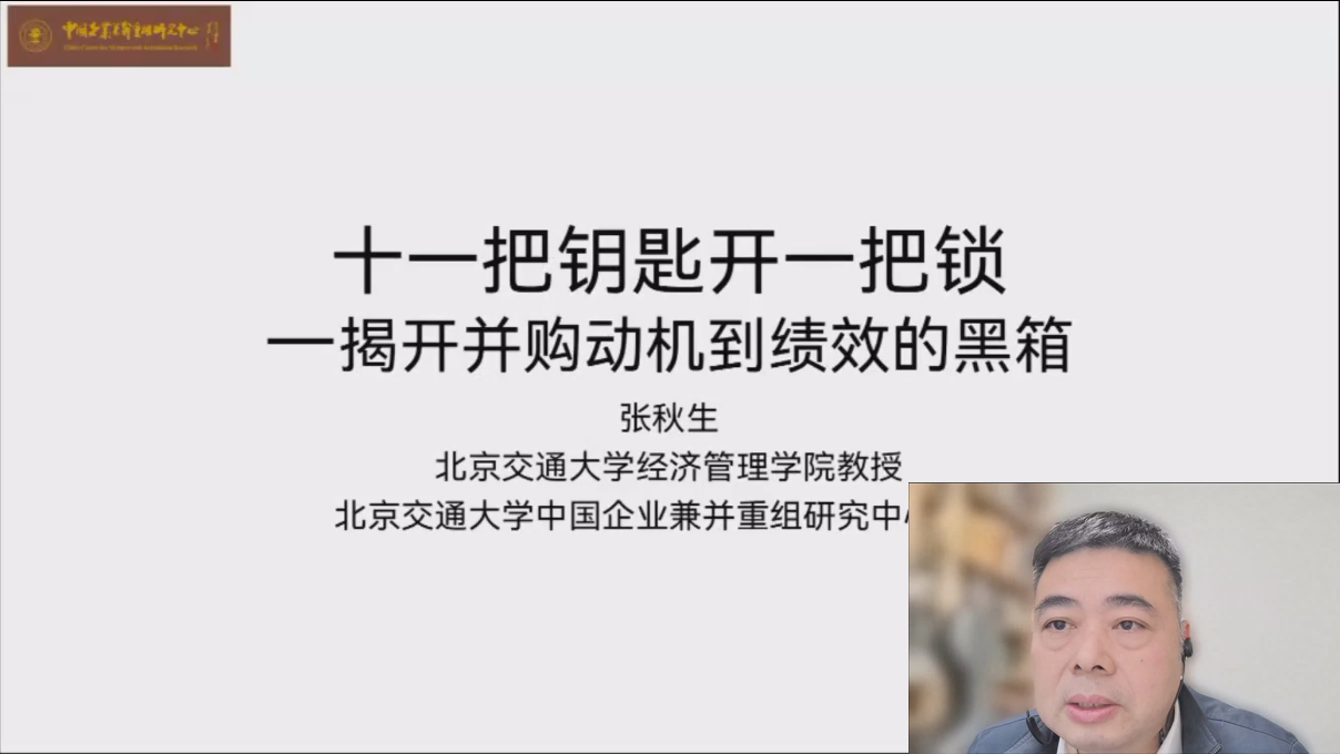 北京交通大学张秋生教授以“十一把钥匙开一把锁——揭开并购动机到绩效的黑箱”为题,从并购的逻辑过程、主体、主体间的关系、企业控制牢靠程度、产业联系、产业链上下游、机制、结果、表现、环境、时间等11个维度层层递进,揭开了企业并购动机到绩效的黑箱。他认为,企业并购应以控制权转移为标准进行界定;并购是否成功,取决于并购动机是否实现,包括可定量描述和可考核给予奖励,如此才能将并购动机落实到实际工作;并购绩效也不限于股价和财务指标的变化,而是过程绩效,即能够把并购动机实现程度反映出来。