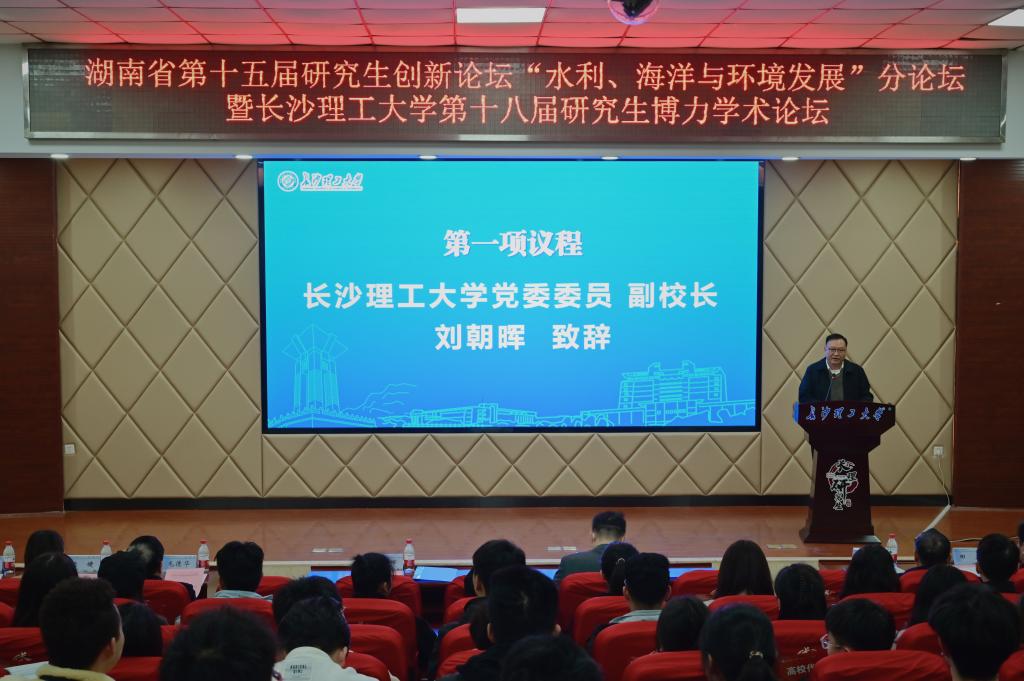 刘朝晖致论坛开幕词。他指出,党的十八大以来,习近平总书记对新时代的水利工程、海洋强国建设和生态环境保护作出了系列重要的讲话和指示,为深化教育教学改革,推进学科专业建设,开展学术研究,服务国家战略等方面指明了方向。本次论坛聚焦“水利、海洋与环境发展”主题,不仅是增进省内外学术交流的重要桥梁,更是营造“水利、海洋与环境”相关领域学科交叉融合、共同发展的重要契机,希望广大研究生通过本次论坛激发创新意识,涵育科学素养,在科研领域不断取得新突破!