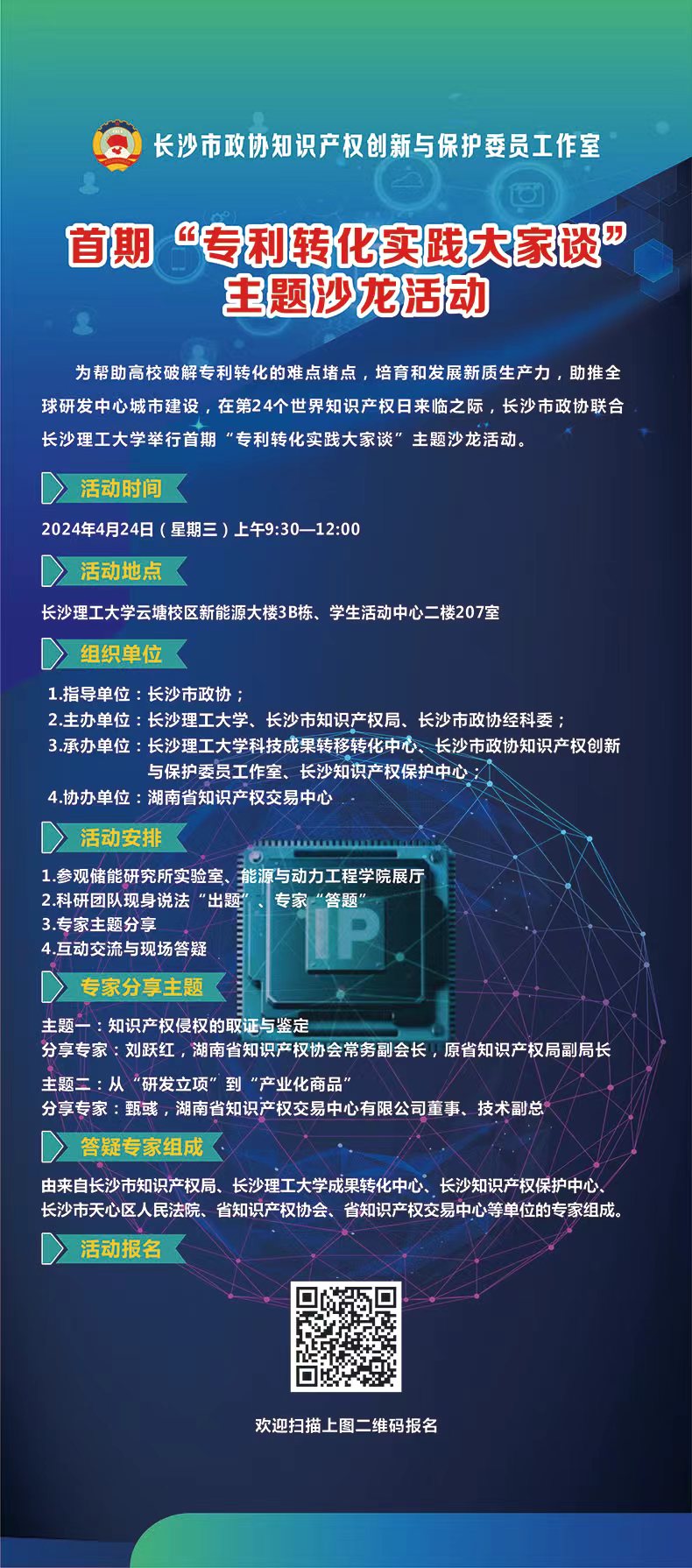 长沙市政协知识产权创新与保护委员工作室首期“专利转化实践大家谈”活动通知