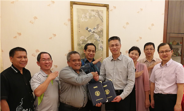 President. Mr.Datuk Dr. D Kamarudin D Mudin, together with VP. Mr. Rasid Mail extended warmest welcome to the delegate. During the talk on Mar.13th, both sides came to a conclusion that a wide range of cooperative implements should be carried out, covering academic, staff and students exchanges. The talk proceeded to elaborate on the initiatives of co-establishing a new Confucius Institute at UMS, rendering a Letter of Intent on it.