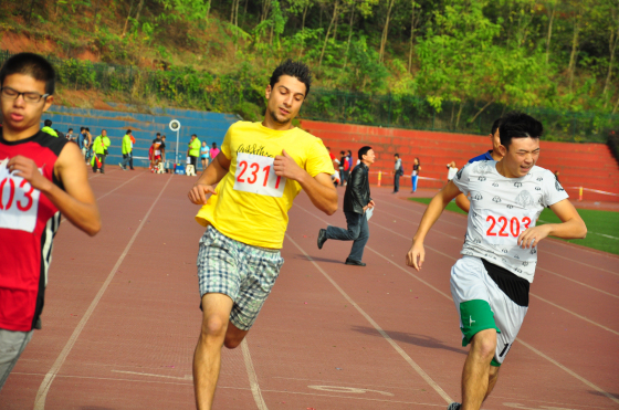 On November 14th, the twelfth School Track & Field Sports Meet was held in Yuntang campus. Representatives of the international students dressed in their national costumes and holding banners of respective countries, attended the opening ceremony. Their vibrant and energetic cheerleading performance demonstrated the positive outlook of the youth, winning applause from the audience.