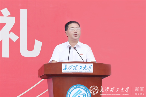 曹一家代表全校师生员工对2023级本科新生表示热烈的欢迎和衷心的祝贺,向新生的父母、师长致以诚挚的感谢,并以《做知行合一的奋斗者》为题致辞。他指出,同学们来到长理,是人生的一次重要跨越,更是一次出于信任的重大选择。60多年来,一批批青年学子从这里成长成才,又从这里扬帆启航,投身伟大时代,建设伟大事业,在国家重大工程中建设攻关、创新作为,共同锻造服务“交通强国”的中坚力量、服务国家基础设施建设的坚实力量、服务国家能源安全的重要力量、“守护好一江碧水”的独特力量。他期待全体新生接好历史的接力棒,在强国建设、民族复兴伟业中勇当先锋,用不懈奋斗成长为灿烂的明日之星。