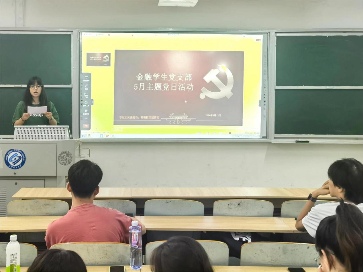 5月20日,经管学院各学生党支部开展了“学纪正风强党性,砥砺担当建新功”主题党日活动,各支部书记及支部全体党员参与本次活动。