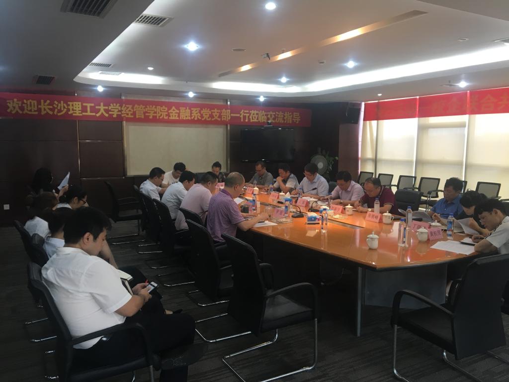 2018718下午,经管学院党委书记王宏、联系支部的副院长彭新宇、金融系支部书记杨密带领金融系党支部全体党员,前往南粤银行湖南省分行开展“校企联合、支部共建”的主题党日活动,共同探讨构建校企联合支部共建的长效机制,以及基于此机制的金融特色人才培养与金融业态创新发展的问题交流。
