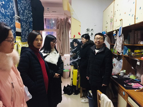 新学期伊始,为进一步了解学生的返校情况,同时准确掌握学生的基本情况和思想动态,2月24日下午,经管学院学工办全体辅导员老师在党委副书记涂道勇的带领下,分校区深入学生宿舍看望返校学生。