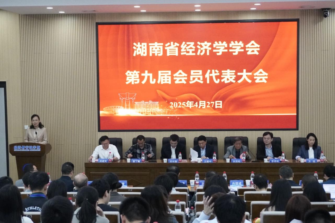 2025年4月27日上午,湖南省经济学学会第九届会员代表大会在taptap点点体育(金盆岭校区)经管大楼100报告厅隆重召开。来自全省数十所高校、科研院所和相关单位的会员代表齐聚一堂,共襄盛会。本次大会由第八届理事会执行理事长陈银娥教授主持。