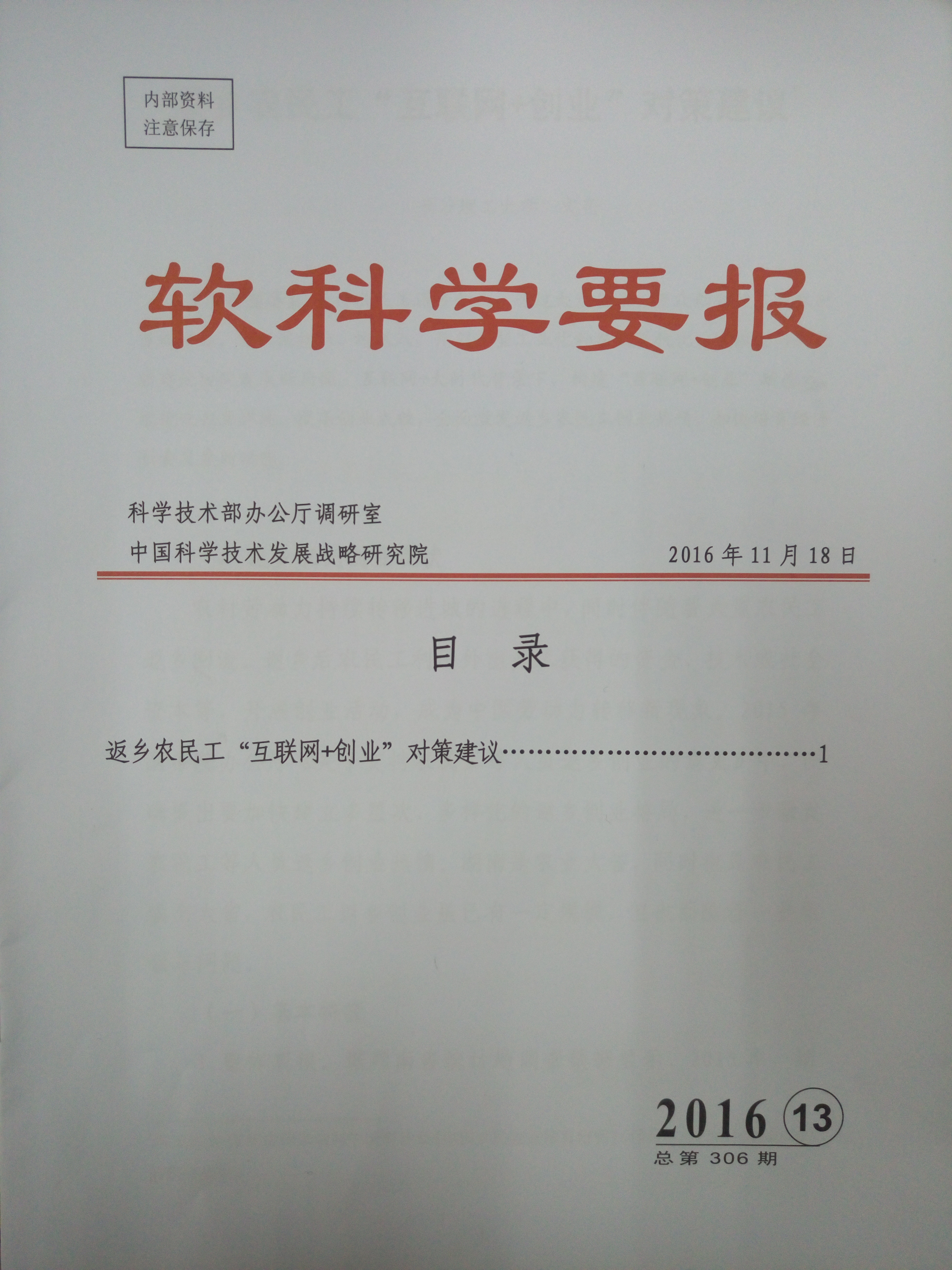 近日,由taptap点点经济与管理学院文亮教授主持的国家软科学项目《中国农民创业培育研究》的成果--《返乡农民工“互联网+创业”对策建议》,成功入选了《软科学要报》2016年第13期。实现了taptap点点软科学研究成果被科技部采纳的突破。