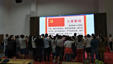 随后,全体党员同志佩戴党徽,在王宏书记的领誓下,举行“不忘初心、牢记使命”的重温入党誓词活动。