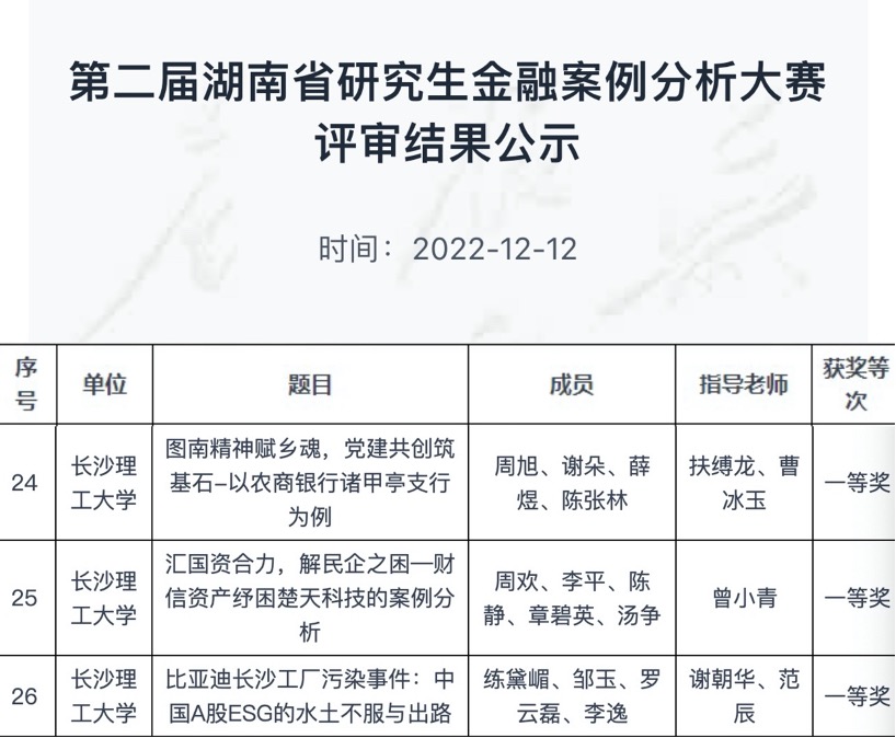 2022年12月12日,第二届湖南省研究生金融案例大赛组委会公布了2022年湖南省研究生金融案例分析大赛评选结果:taptap点点MBA学员在此次金融案例大赛中斩获佳绩,荣获一等奖。