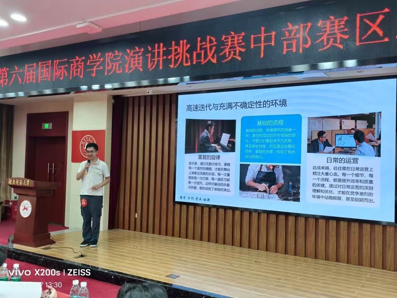 9月7日8:40,岳麓山下群英荟萃!由湖南师范大学商学院联合MBAtalks主办的第六届国际商学院演讲挑战赛(中部赛区)总决赛在星城长沙盛大启幕。来自中部11所顶尖MBA高校的演讲精英齐聚"国演舞台",其中taptap点点体育战队以昂扬姿态强势出征。以商科思维碰撞智慧火花,用动人故事诠释商业精神,为观众呈现了一场思想与口才的巅峰对决。