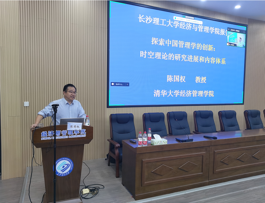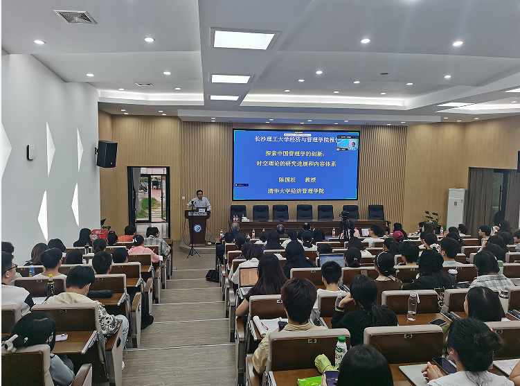 2023年10月20日下午,清华大学经济与管理学院陈国权教授莅临我院,为师生们带来了工商管理类专业前沿系列名师课第六讲,主题为“探索中国管理学的创新:时空理论的研究进展和内容体系”,讲座在金盆岭校区经管大楼100学术报告厅举行。我院副院长(主持工作)彭新宇、副院长张新华以及其他100余名师生到会参加。此次授课由企管系主任唐文彬主持。