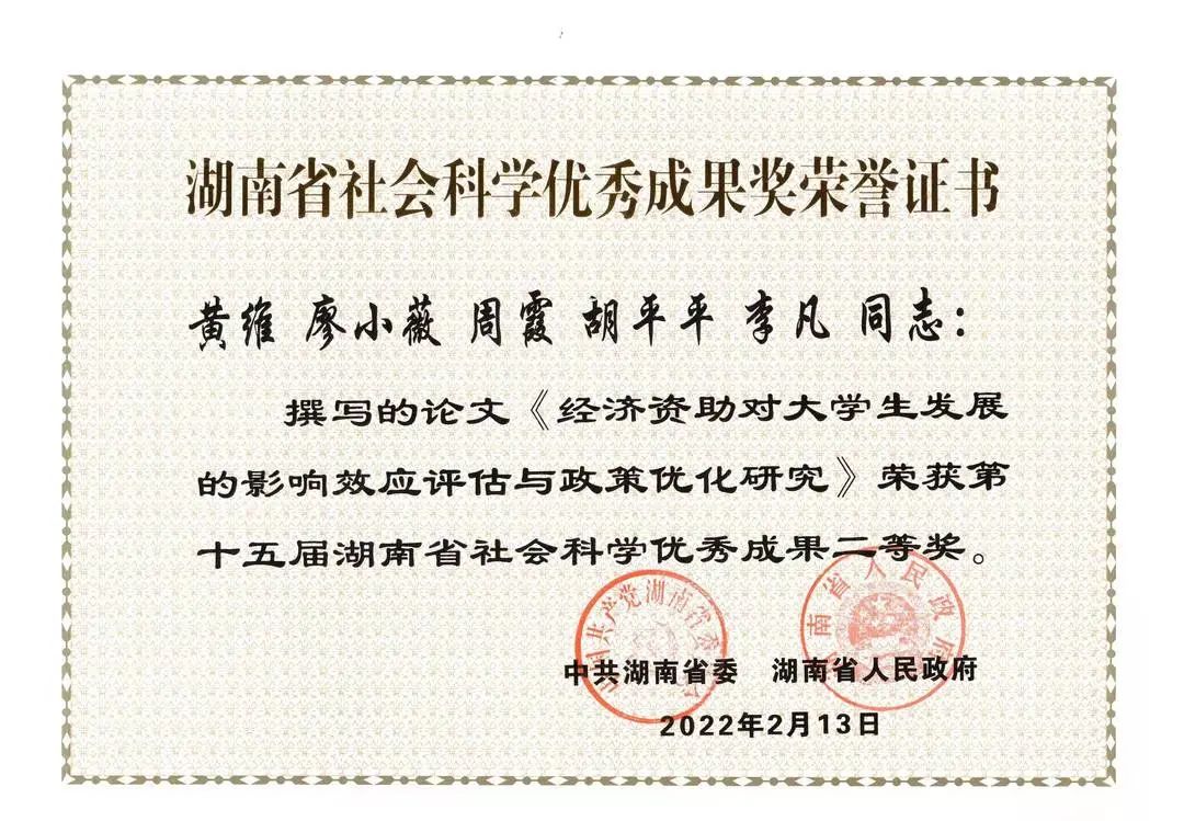 ☑ 获湖南省社会科学优秀成果奖二等奖(排名第二2022.02)