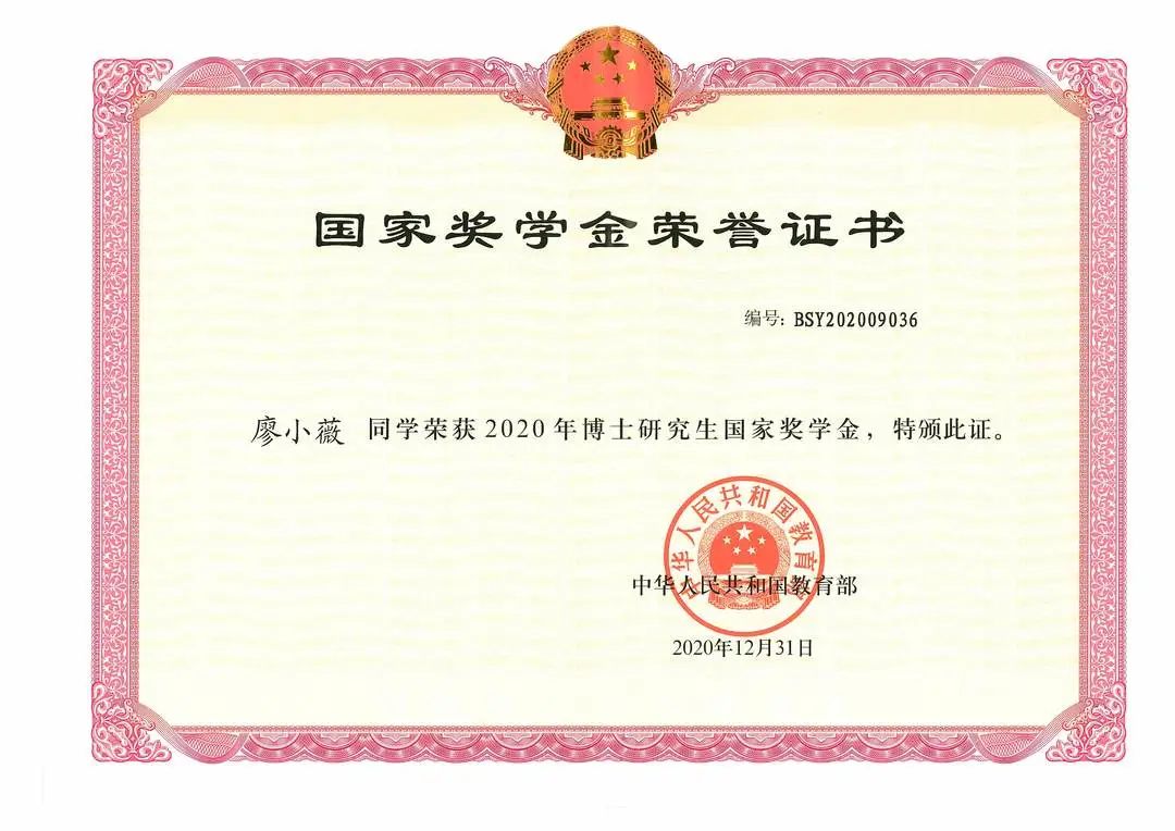 ☑ 获国家奖学金4次(2017.11、2018.10、2020.10、2022.10)