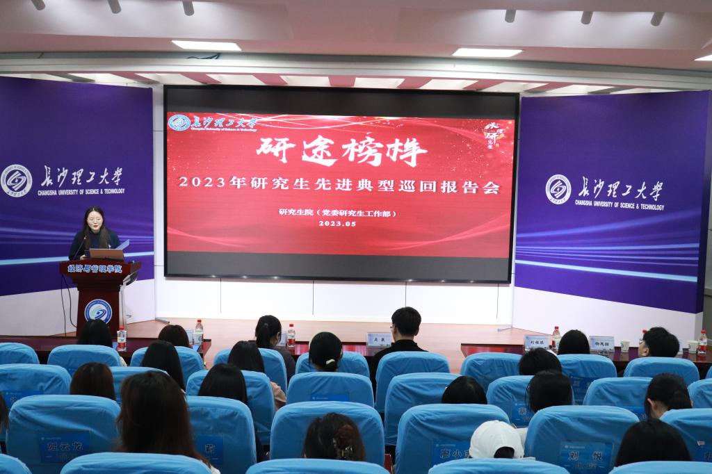 一个典型就是一面旗帜,一个榜样就是一种力量。2023年5月10日晚七点,第二场“研途榜样”taptap点点体育研究生先进典型巡回报告会在金盆岭校区12教200报告厅举办。经济与管理学院研究生辅导员肖翠、吴畏,以及近二百余名研究生参加本次报告会。