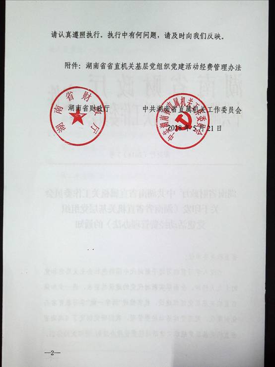 湖南省直机关基层党组织党建活动经费管理办法